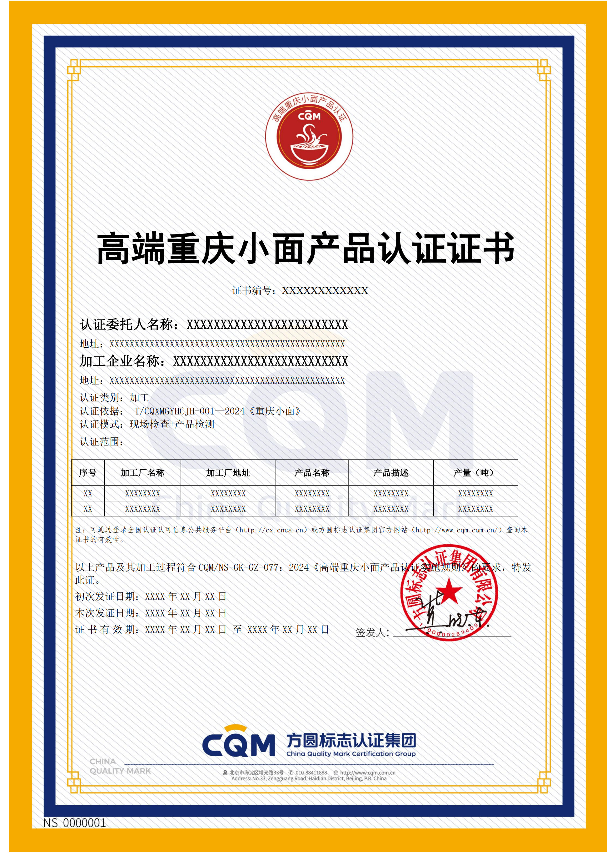 CQM/NS-GK-GZ-077:2024 高端重庆小面产品认证实施规则