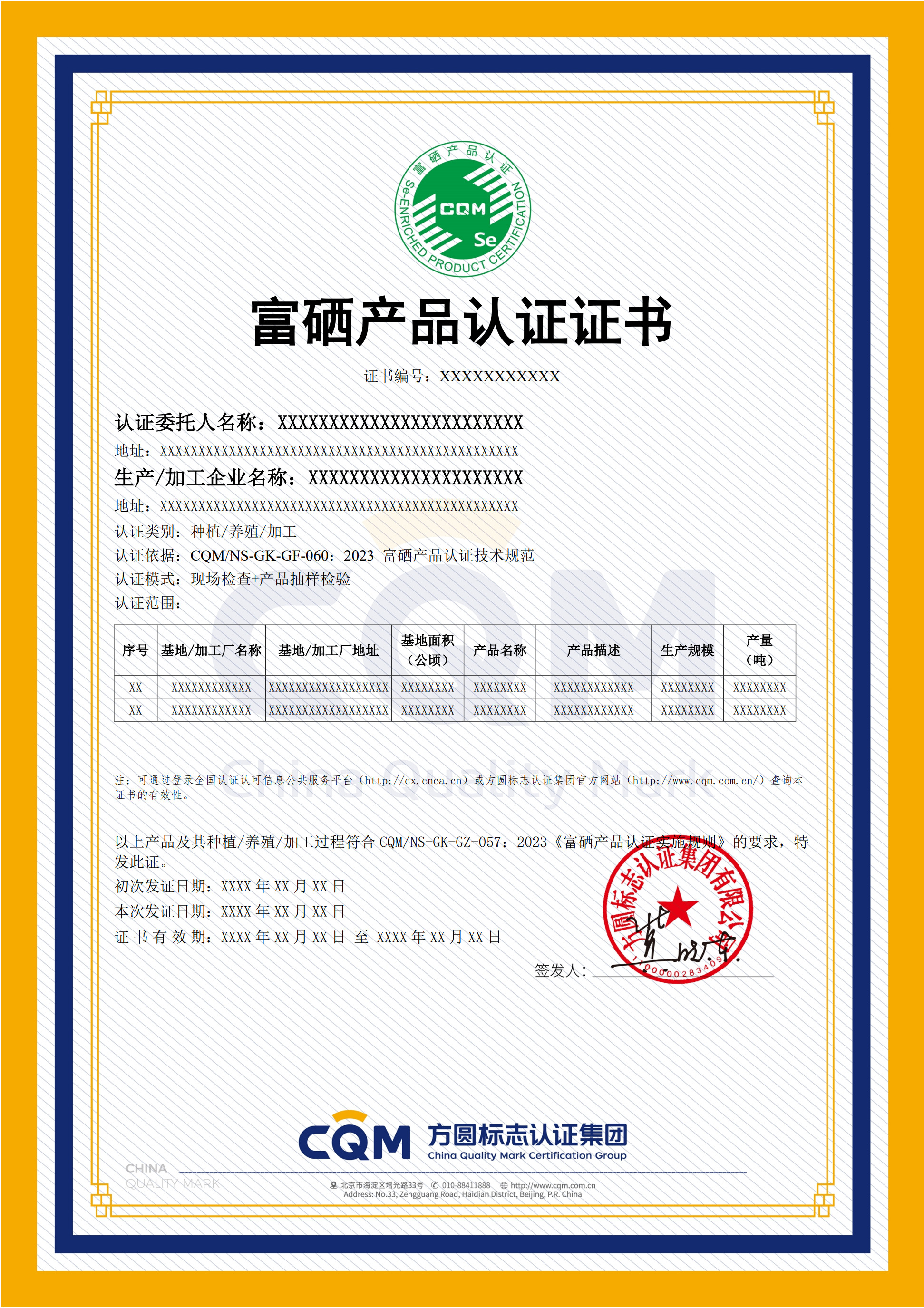 CQM/NS-GK-GZ-057:2023 富硒产品认证实施规则