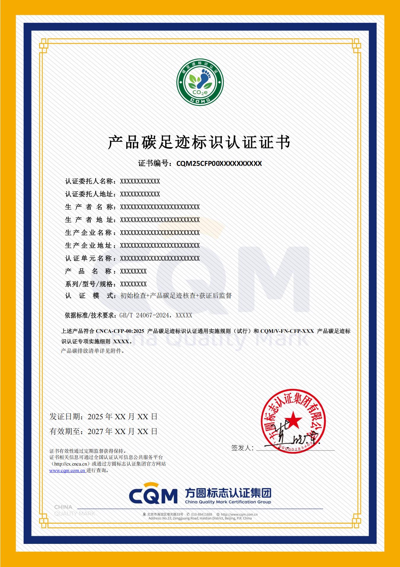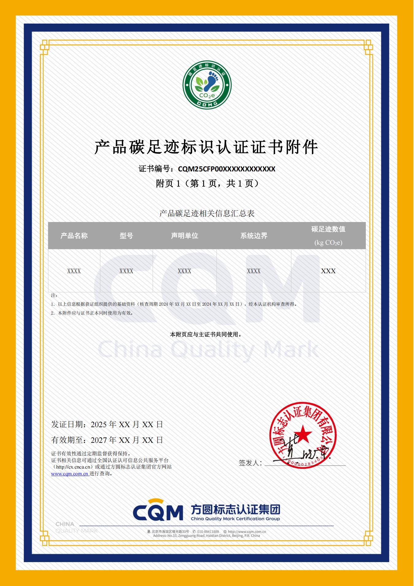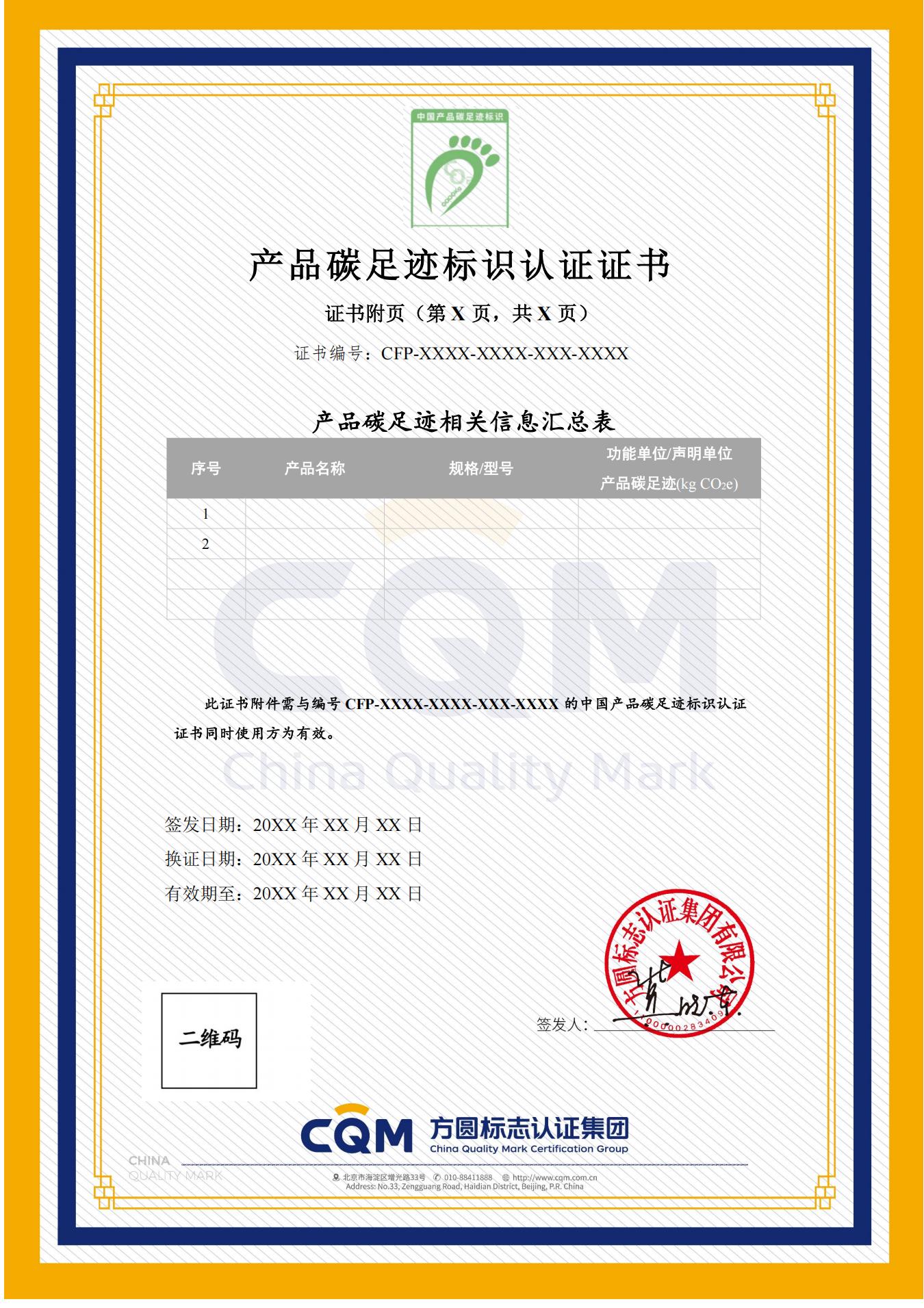——产品碳足迹标识认证江苏证书样式/标志样式:
