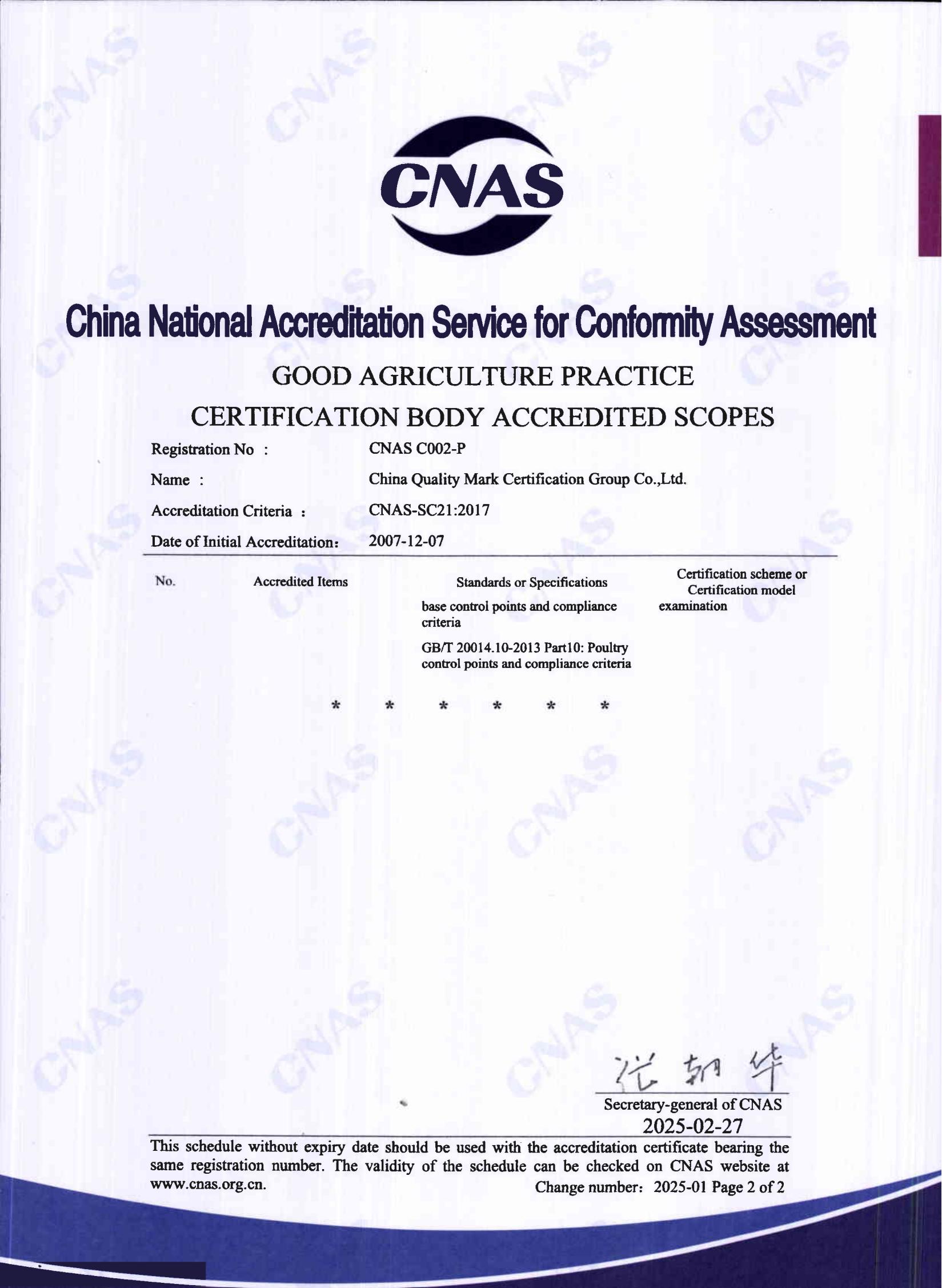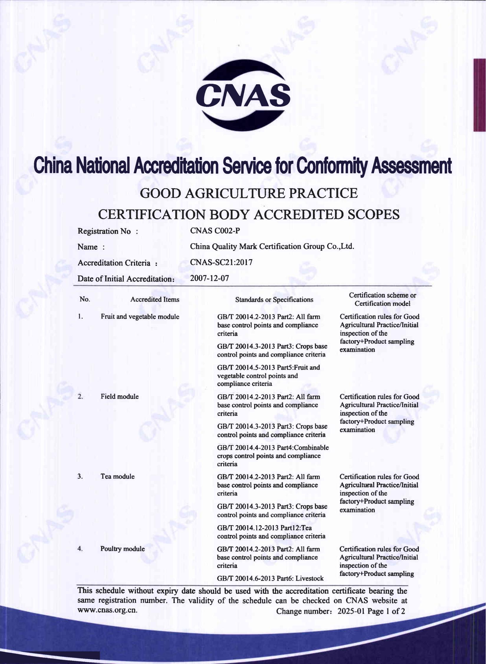良好农业规范GAP认证认可证书