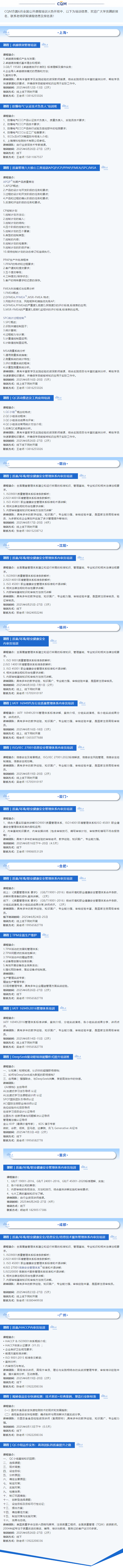 CQM方圆2025年6月全国公开课程培训计划