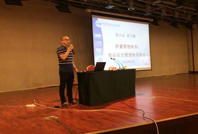 2015年4月28日,方圆广东公司应揭阳市食品工业行业协会邀请,为揭阳市食品工业行业协会食品安全知识培训班授课,为参会企业讲解了质量管理体系(ISO9001)与食品安全管理体系(ISO22000)认证的相关知识与要求,得到了参会企业的一致好评。