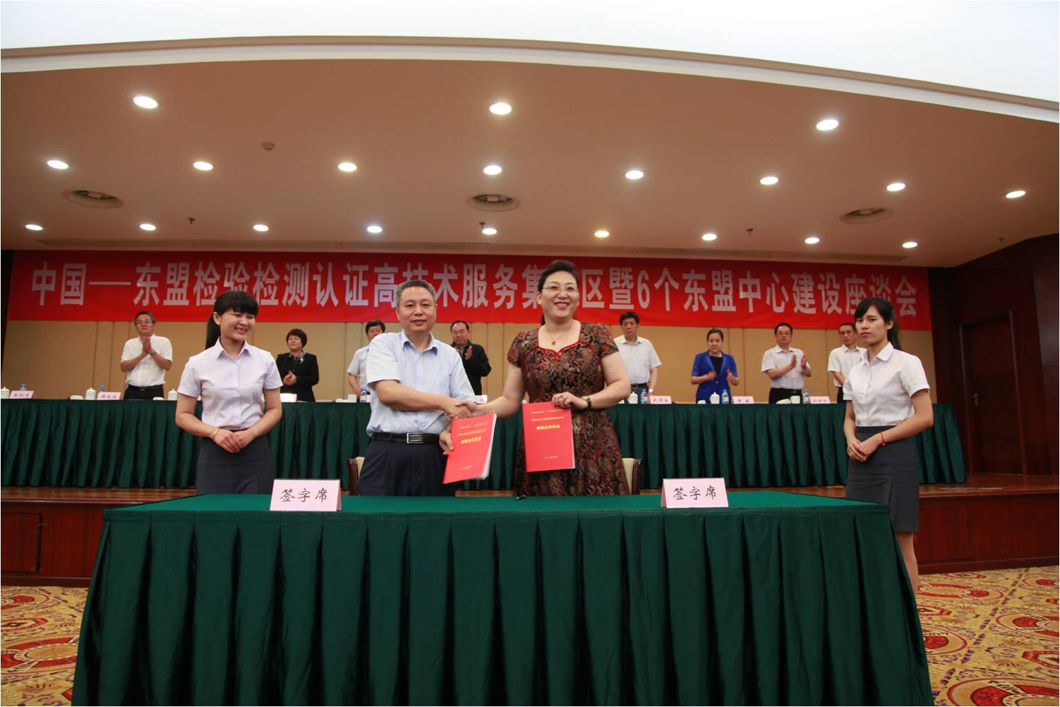 2015年5月18日,OD官方网页版-OD(中国) 总经理冀晓东与广西质量技术监督局局长陈鸿起签署战略合作协议,共同筹建“中国方圆—东盟认证检验检测研究中心”。广西自治区政府副主席陈刚、国家质检总局副局长梅克保、质量司司长黄国梁、科技司司长武津生、人事司副司长谷保中、国家标准委副主任于欣丽等相关领导出席并见证了整个签字、授牌、挂牌仪式。