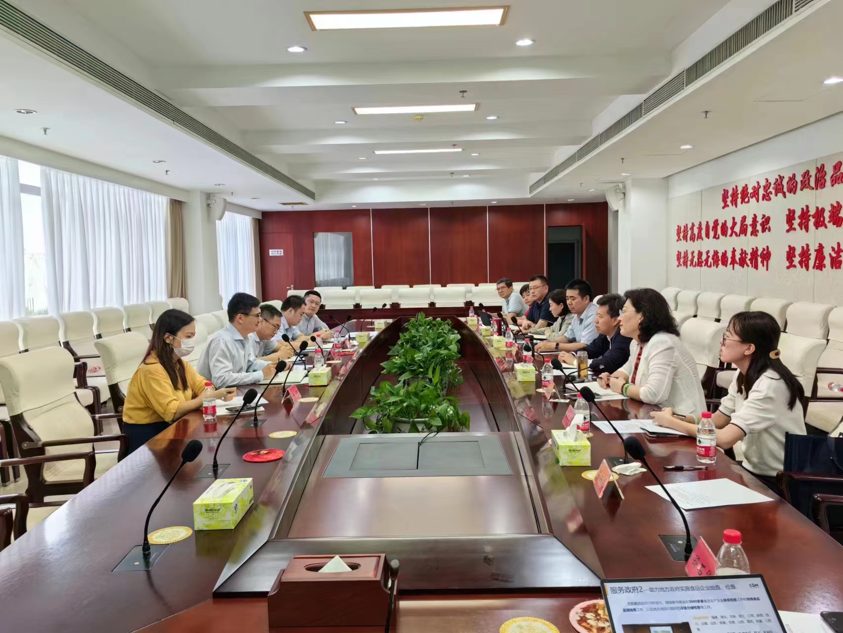 4月17日,CQM方圆董事长冀晓东在海南调研期间,在海南省市场监管局副局长王军陪同下,会见海南省委深改办副主任叶光亮并出席座谈会。