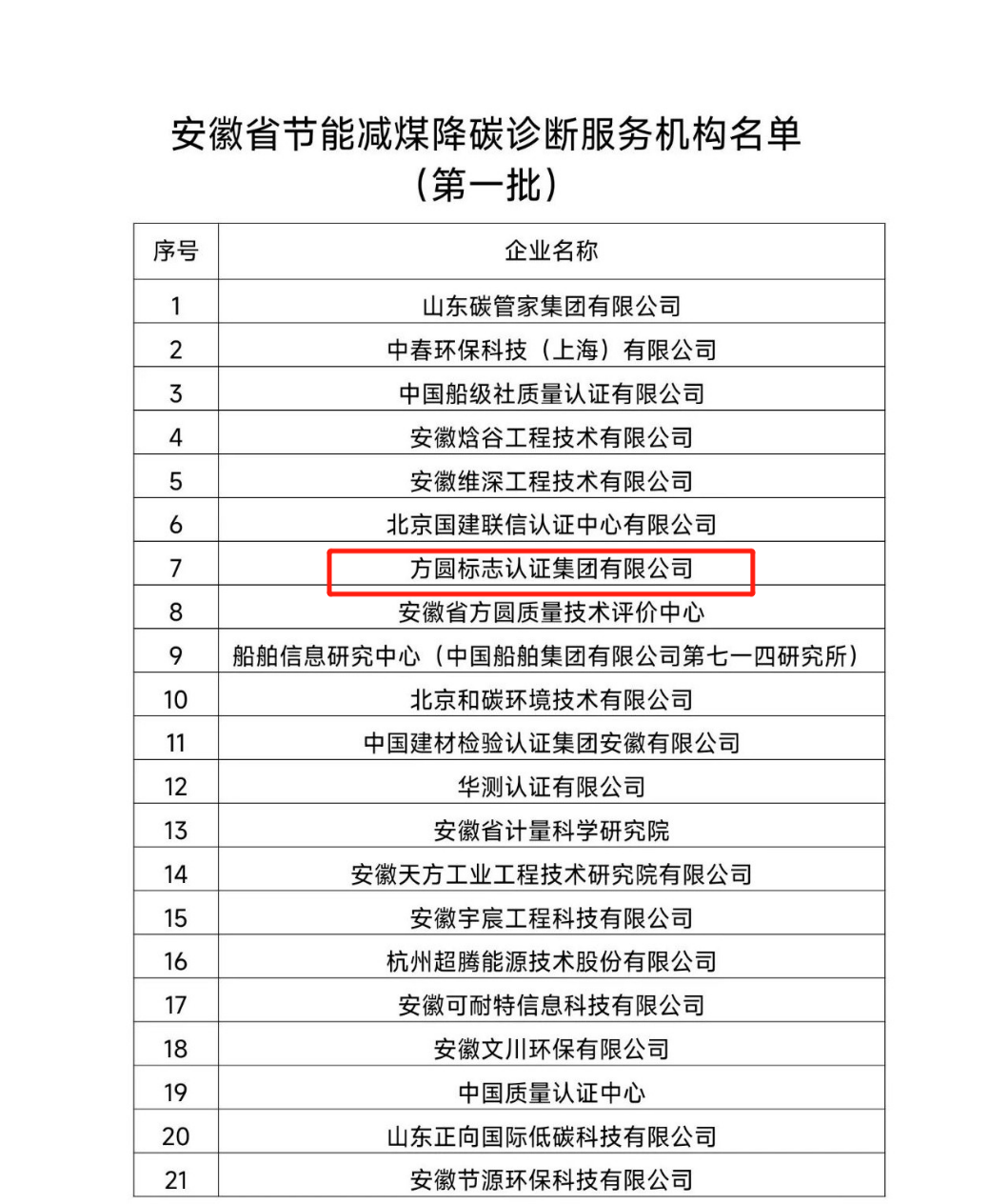 根据《安徽省发展改革委OD官方网页版-OD(中国)征集安徽省节能减煤降碳诊断服务机构和合同能源管理合格供应商的通知》要求,经专家评审,方圆标志认证集团成功入选安徽省节能减煤降碳诊断服务机构名单(第一批)。