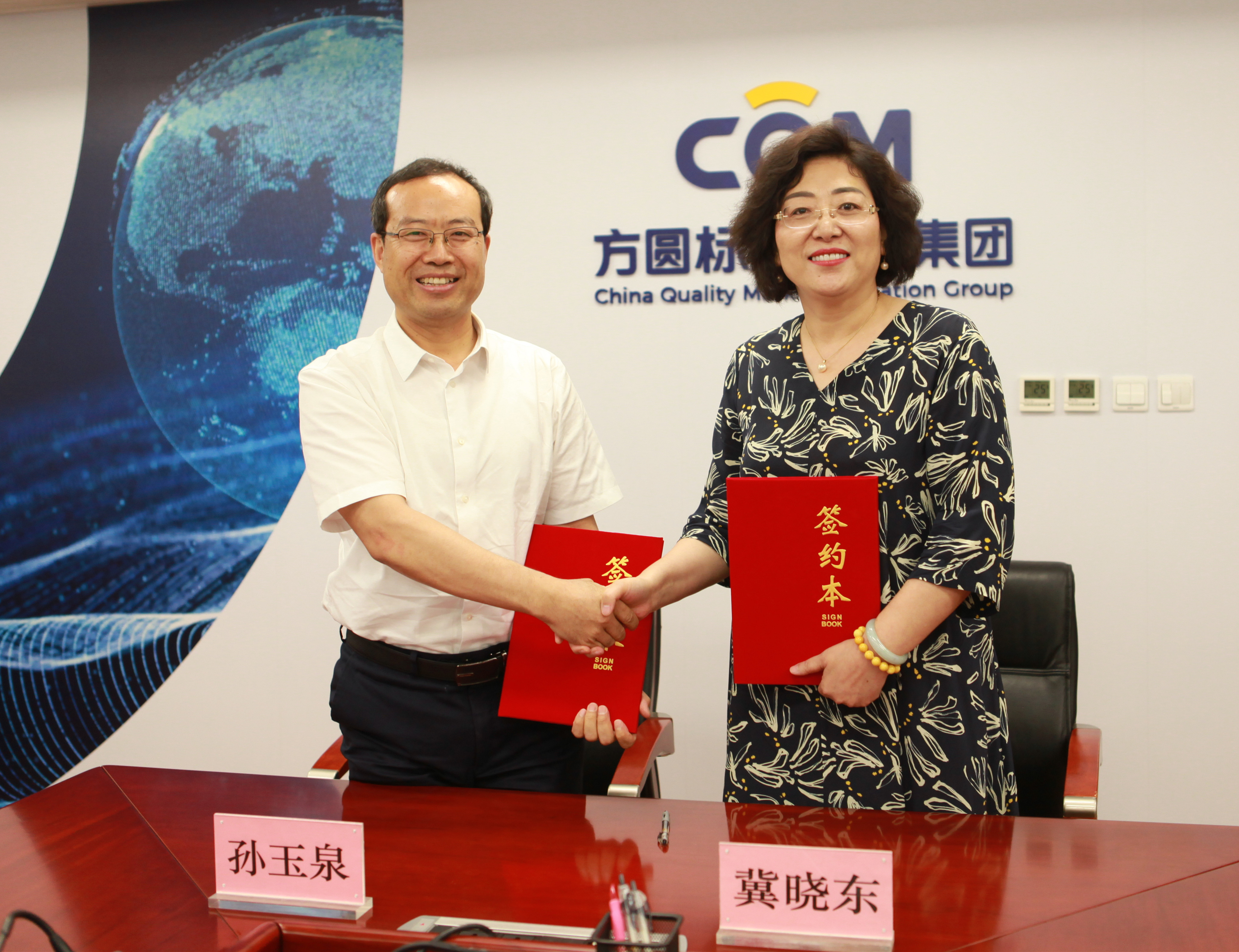 孙玉泉院长与冀晓东董事长代表双方机构签署了方圆标志认证集团与山东省产品质量检验研究院合作框架协议书。冀晓东董事长向孙玉泉院长颁发了“CQM方圆集团年度最佳战略合作伙伴”的奖牌。