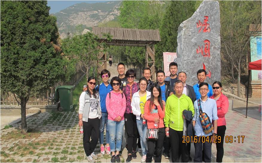 公司全体员工乘大巴抵达太原崛围山脚做准备活动