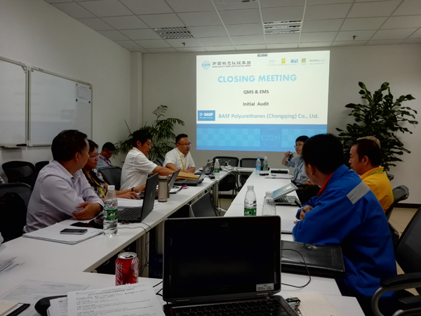 近日,方圆对巴斯夫聚氨酯(重庆)有限公司导入的ISO9001:2015、ISO14001:2015管理体系进行了两体系的结合审核,通过专业、高效的增值性审核,深得受审核方的好评和高度赞誉。