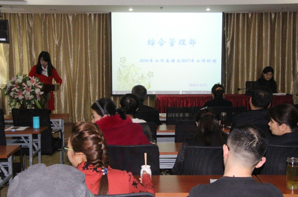 会议首先由各部门部长对2016年度本部门工作进行述职,内容包括:各部门2016年度全年已完成的重点工作、亮点工作,存在的不足、问题和建议以及2017年总体工作追赶超越计划,各分管领导分别对所负责的部门汇报进行了点评。