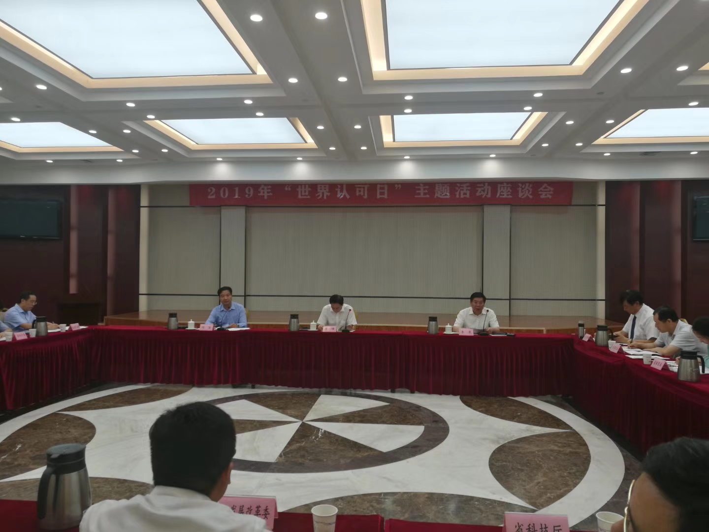 时间:2019年06月08日 在6月6日召开的2019年世界认可日主题座谈会上,山东省市场监督管理局贾峰副局长为“山东认证讲师团”授旗,方圆山东公司副总经理刘金台作为讲师团代表接旗。