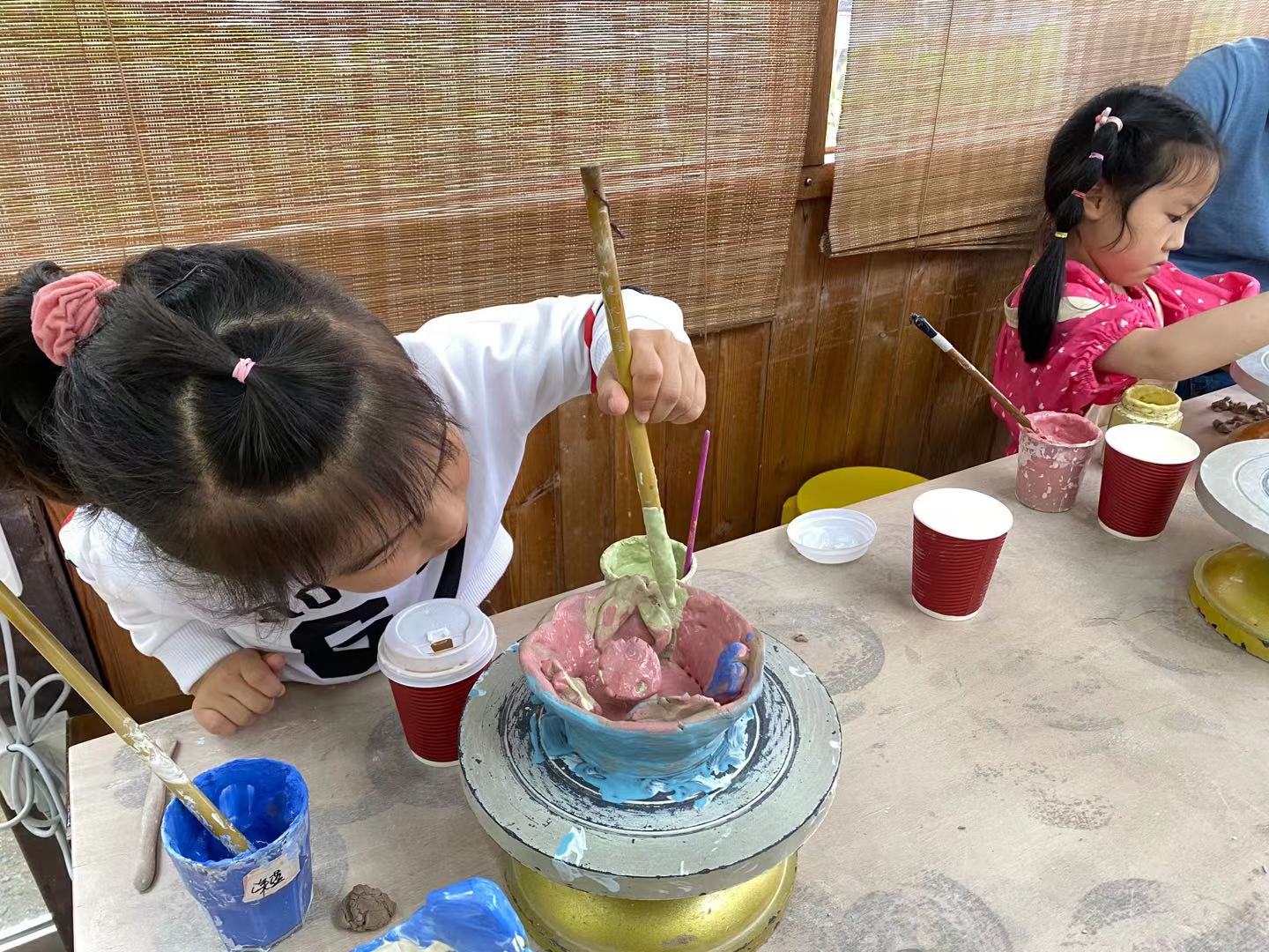 本次活动特别邀请专业的陶艺老师进行指导,让孩子们了解中国传统古老的陶艺文化。老师教大家的是手捏(雕塑)成型法,这是陶艺最原始、最基本简单的方法,适合初学者。老师展示了如何打底、叠加陶泥进行连接和塑形。如何运用塑刀等工具修改作品。最后进行上釉完成作品。经老师指导,孩子们尽情地发挥自己的创造能力。呈现出造型各异的作品。