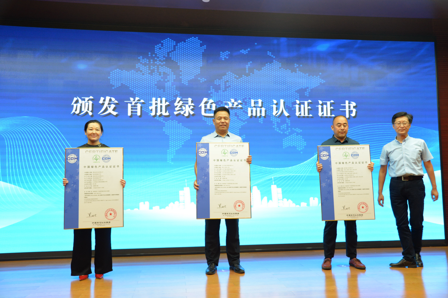 方圆标志认证集团现场向山东千森木业集团有限公司、临沂国正木业有限公司、费县信和木业有限公司等企业颁发了山东省首批中国绿色产品认证证书。