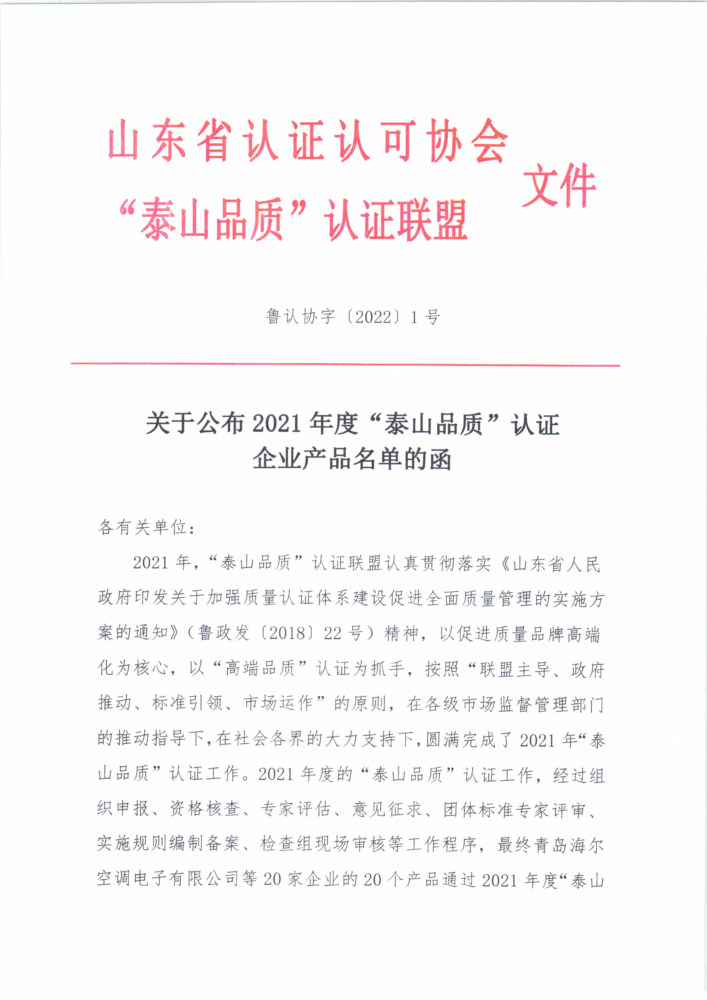 泰山品质认证是山东省为贯彻落实山东省人民政府《OD官方网页版-OD(中国)加强质量认证体系建设促进全面质量管理的实施方案的通知》精神,以促进质量品牌高端化为核心而进行的高端品质认证。获得“泰山品质”产品认证证书,将更有利于企业品牌价值的提升和高品质形象的塑造,有力于提升企业的市场竞争力。
