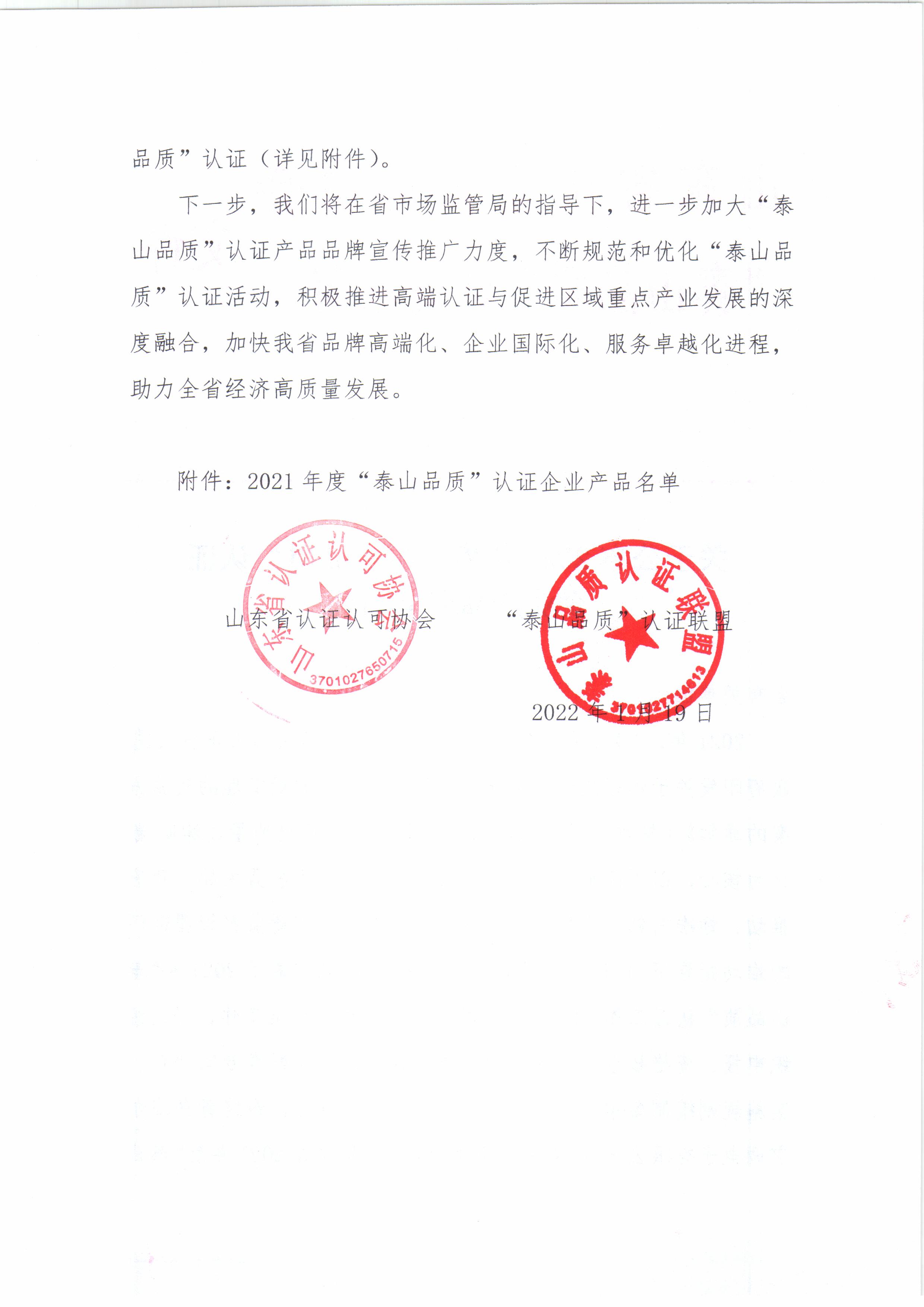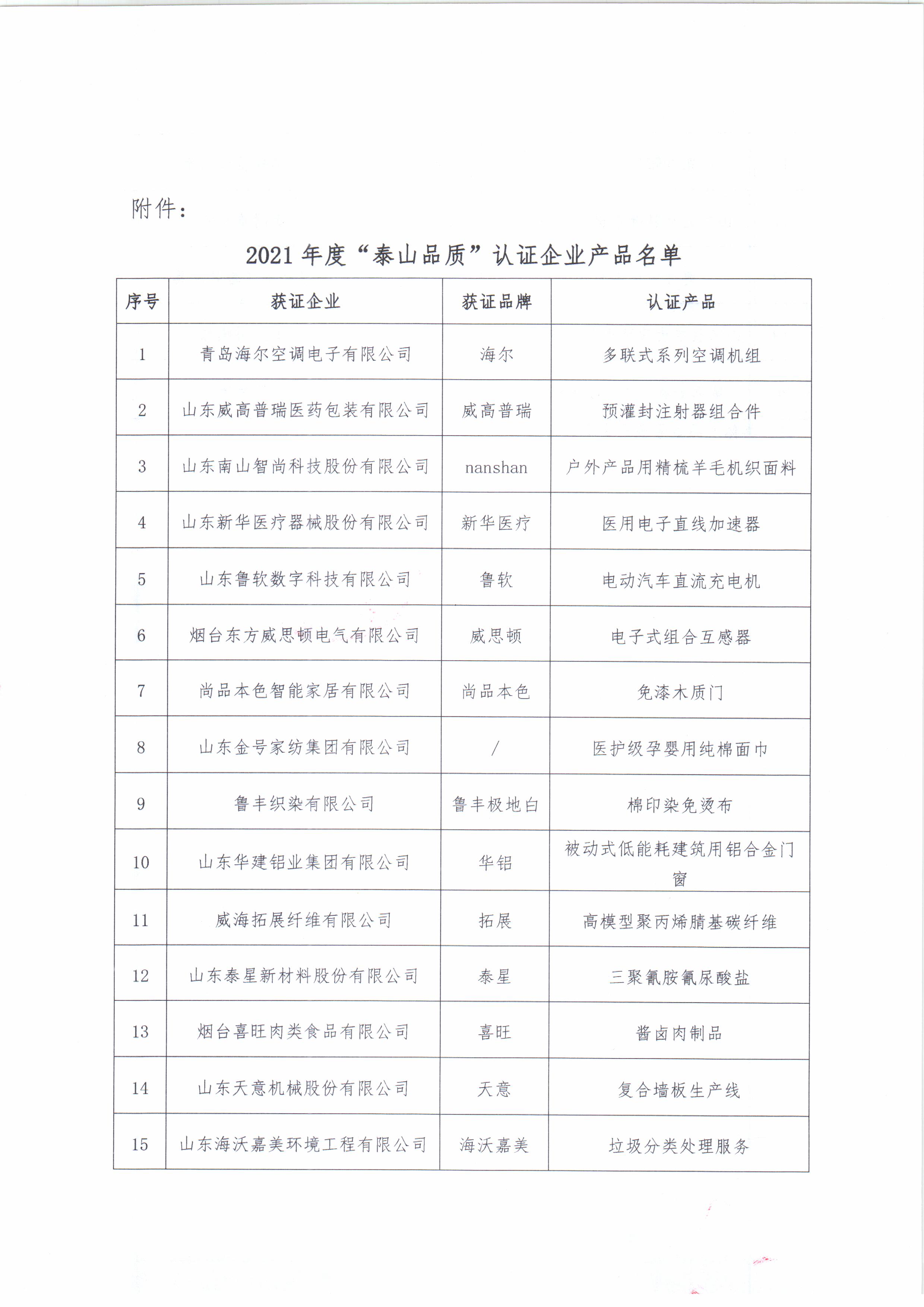 热烈祝贺山东华建铝业集团有限公司等3家企业获得2021年度“泰山品质”认证证书