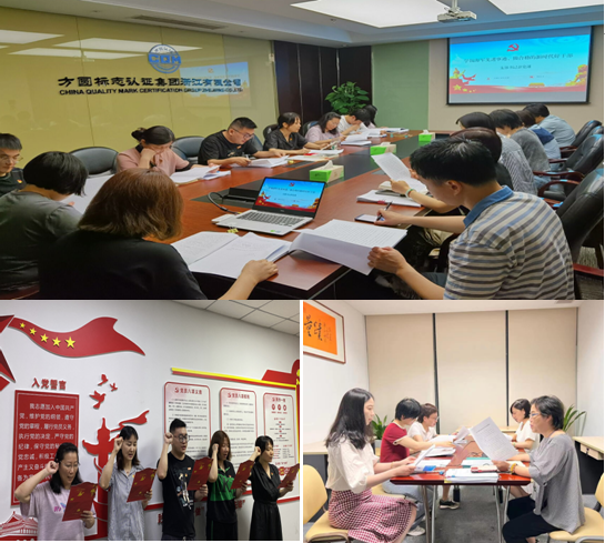 接着,全体党员给王丹丹、杨光华、顾丽华、楼佳、田林等5位6月份入党的同志集中过了政治生日,并在支部书记的带领下重温入党誓词,引导党员同志时刻不忘自己的“第一身份”,永葆初心,发挥先锋模范作用。