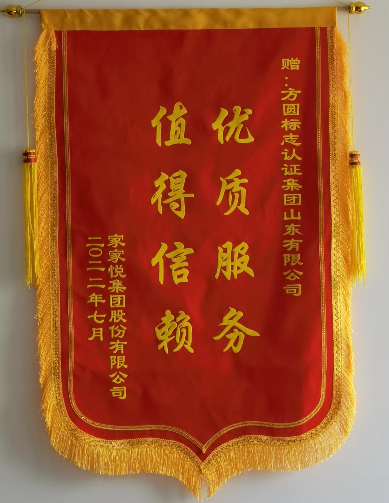 “优质服务暖人心、扎实工作得信赖”——家家悦 集团向方圆山东公司赠送锦旗