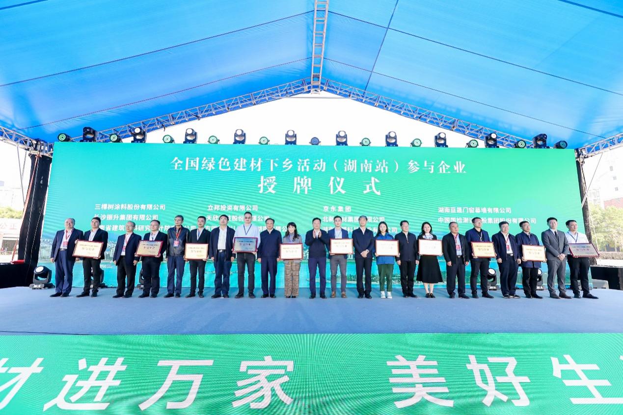 时间:2022年11月03日 为加快绿色建材生产、认证和推广应用,促进绿色消费,助力美丽乡村建设,大力推进湖南建材与装配式建筑产业集群(产业链)发展,加强行业合作,11月1日上午由工业和信息化部、住房和城乡建设部、农业农村部、商务部、国家市场监管总局、国家乡村振兴局六部委指导,湖南省工业和信息化厅、岳阳市人民政府主办的主题为“绿色建材进万家 美好生活共创建”的2022年全国绿色建材下乡活动(湖南站)启动及展销会在湖南省岳阳市湘阴县左宗棠广场正式拉开帷幕。