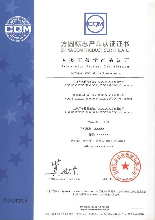 4. 人类工效学认证证书模板和认证标志