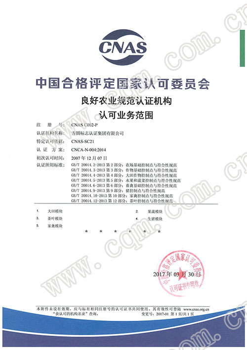 良好农业规范GAP认证认可证书