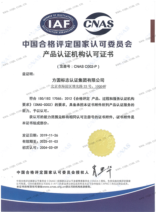>中国合格评定国家认可委员会认可证书