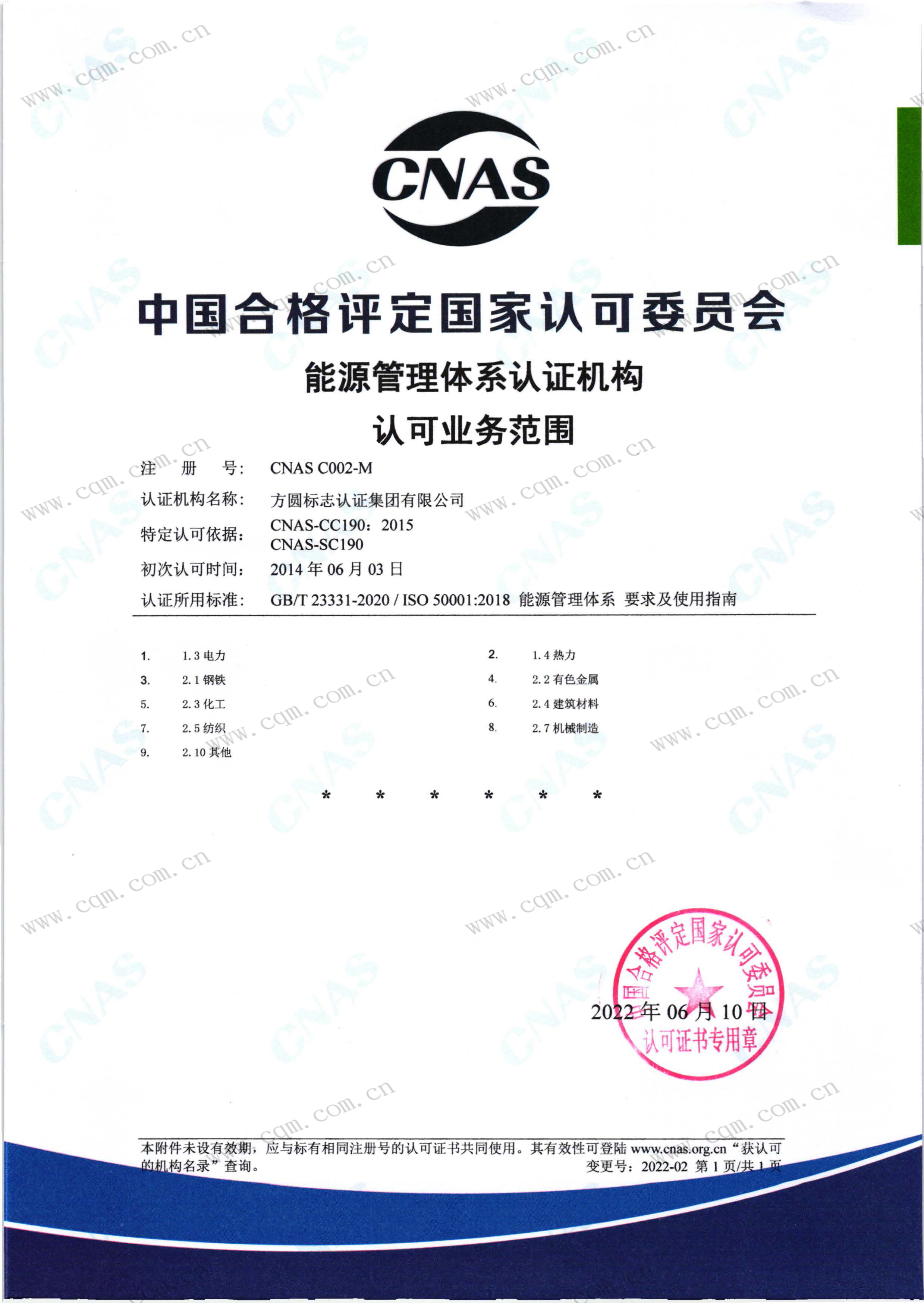 能源管理体系认证机构认可证书