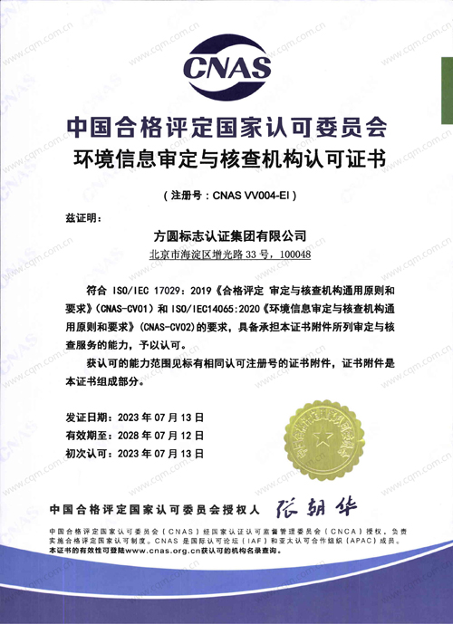 >中国认证认可协会确认证书