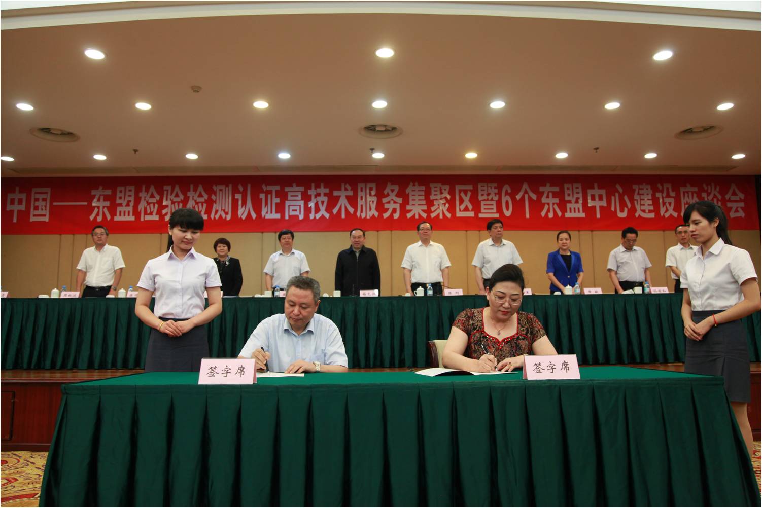 2015年5月18日,OD官方网页版-OD(中国) 总经理冀晓东与广西质量技术监督局局长陈鸿起签署战略合作协议,共同筹建“中国方圆—东盟认证检验检测研究中心”。广西自治区政府副主席陈刚、国家质检总局副局长梅克保、质量司司长黄国梁、科技司司长武津生、人事司副司长谷保中、国家标准委副主任于欣丽等相关领导出席并见证了整个签字、授牌、挂牌仪式。