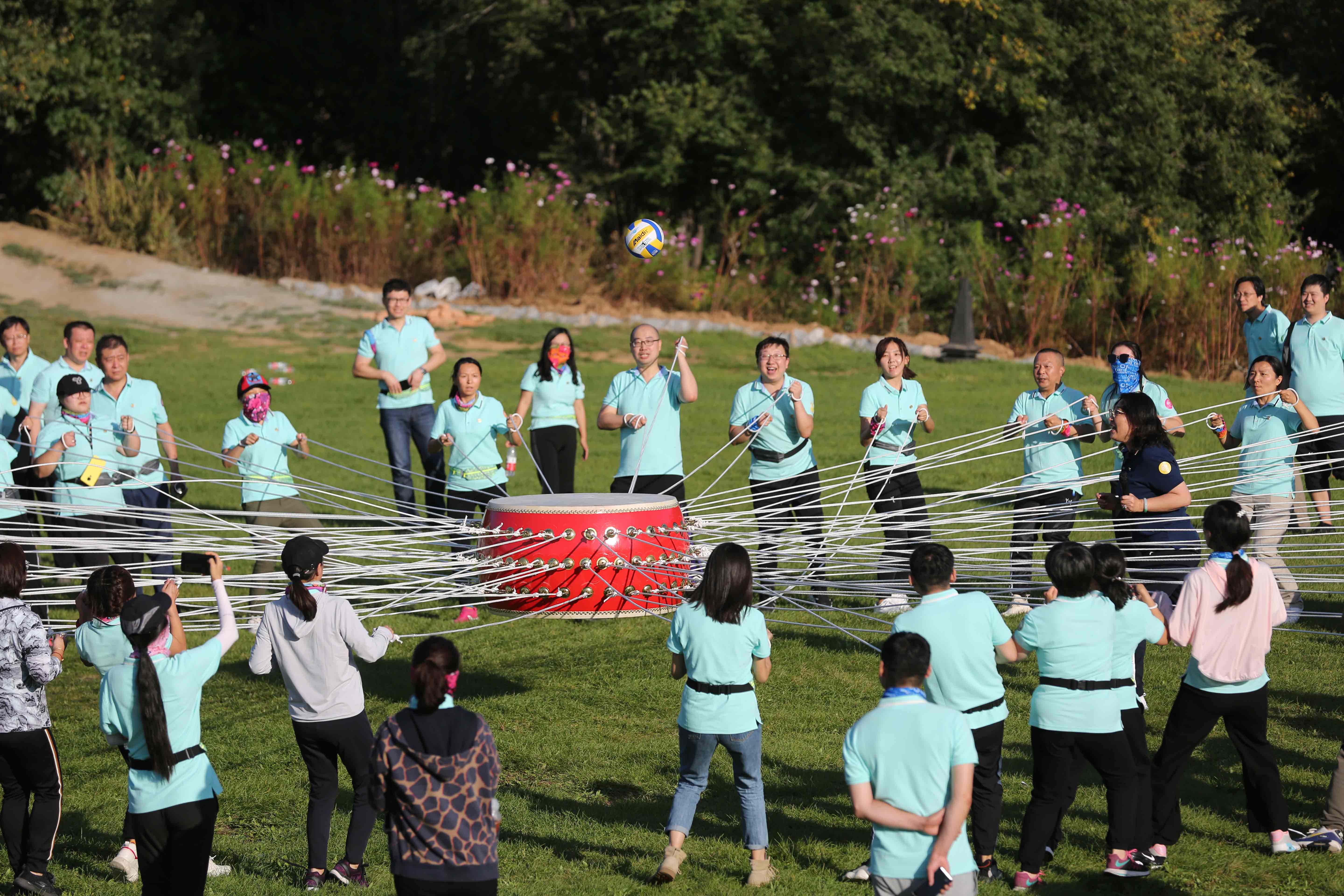 下午培训活动正式开始,职工们被随机分成8组,经过短短十分钟的热烈讨论,各队都顺利完成任务。在队长的带领下,每队队员们展示了各自队伍的队名、队旗、团队口号,充满气势的展示环节无不展现了方圆人的无限风采,同时为团队建设打下基础。随后,以团队竞技的方式开展多项活动,有快速让大家热身的障碍闯关,也有考验队员遵守规则以及团队协作、战略规划的“百人战鼓”“步步高升”“鸿运乾坤”“同舟共济”等趣味运动。所有员工以饱满的热情参与活动,在竞争中培养出团队荣誉感和使命感,共同出谋划策、积极配合,充分表现了方圆集团全体职工敢于挑战、超越自我、协作配合、勇往直前的良好精神风貌。
