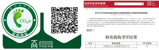 碳足迹认证评价服务获工信部推荐并接轨国际:方圆标志认证集团碳足迹认证评价服务入选工信部第一批《专精特新中小企业服务产品目录》(从1700多个服务项目筛选39项列入目录的项目之一),并联合万向区块链成功为法国施耐德电气(Schneider)打造了可溯源“碳标签”。