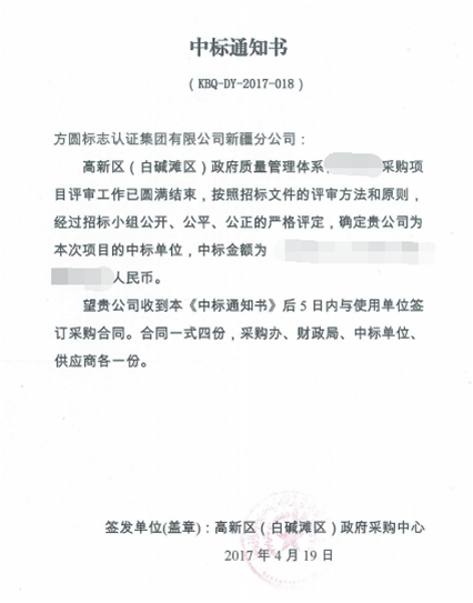 4月19日,在克拉玛依白碱滩区区政府质量提升工作项目招投标中,方圆新疆分公司以优异的成绩中标。