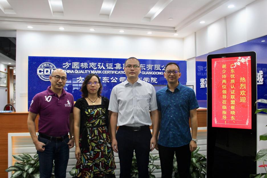 时间:2018年09月10日 2018年9月6日上午,广东优质认证联盟秘书处崔晓东秘书长一行两人到访广东公司,就 “广东优质品牌认证” 2018年推进工作与广东公司进行了深入交流,方圆广东公司熊飞彪常务副总经理、陈明东副总经理参加了交流活动。
