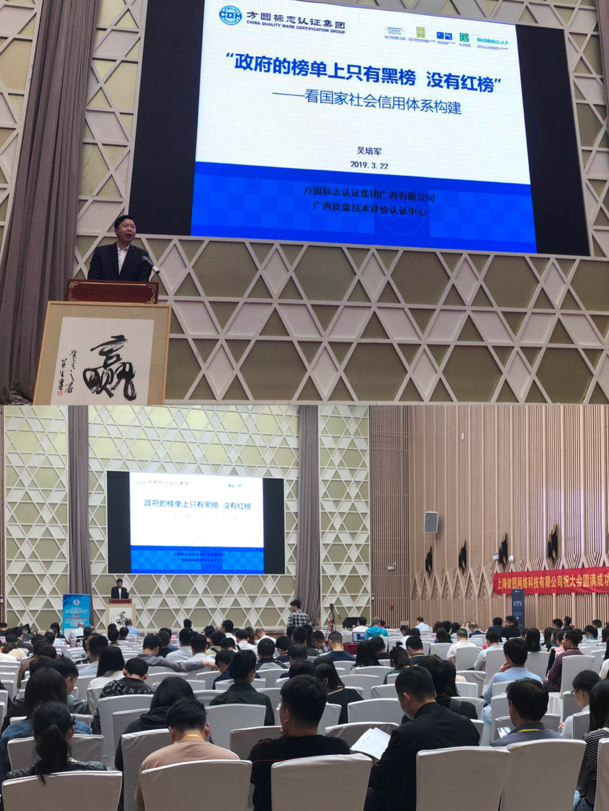 在发言中,吴培军从“政府部门加速构建以信用为核心的市场监管新机制;社会信用体系建设基础不断夯实,进入全面提升、组合推进的新阶段;社会信用体系建设将成为社会治理,推动社会经济高质量发展的重要抓手。”等三个层面就我国当前社会信用体系建设情况与参会嘉宾进行了分享。吴培军发言得到与会嘉宾热烈欢迎和积极评价,进一步提升了方圆品牌在广西安防行业的知名度的影响力,为广西公司在广西安防行业推动信用评价和认证业务奠定基础。