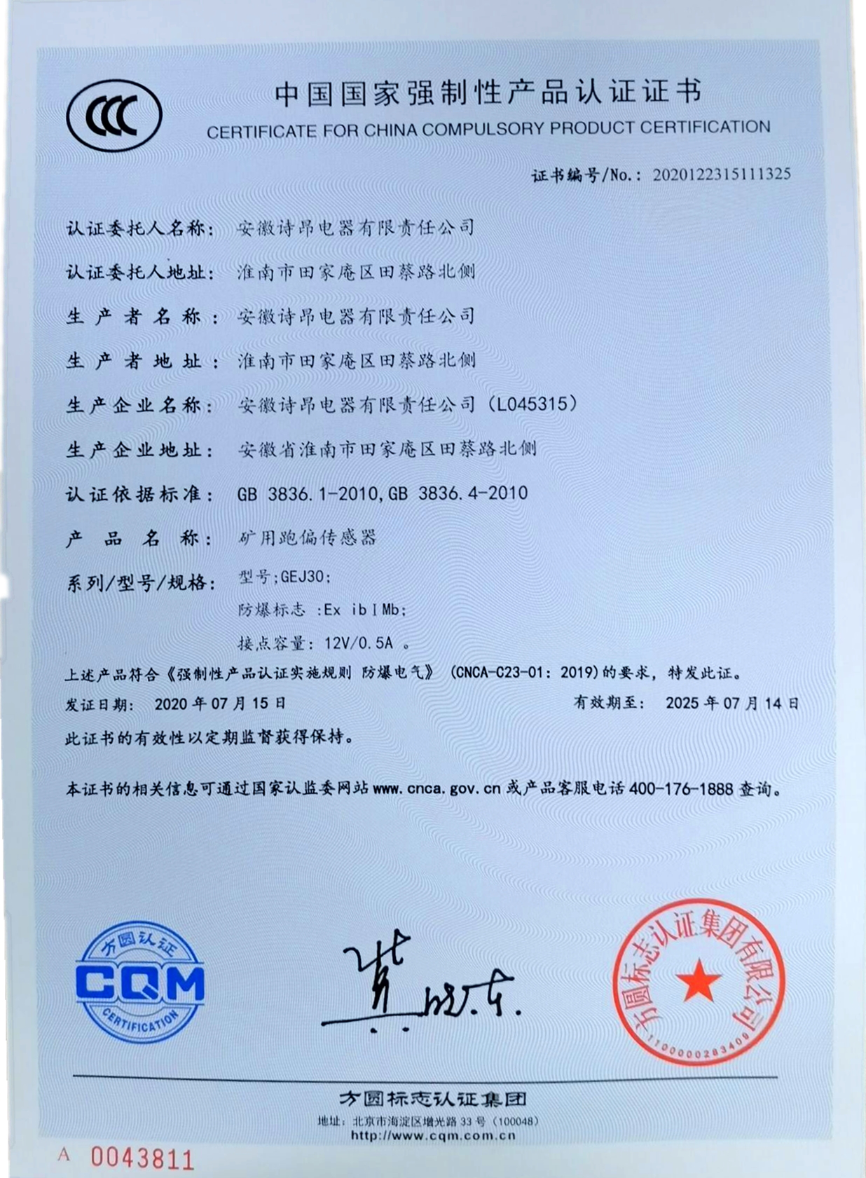方圆安徽公司防爆电气CCC认证工作取得成效