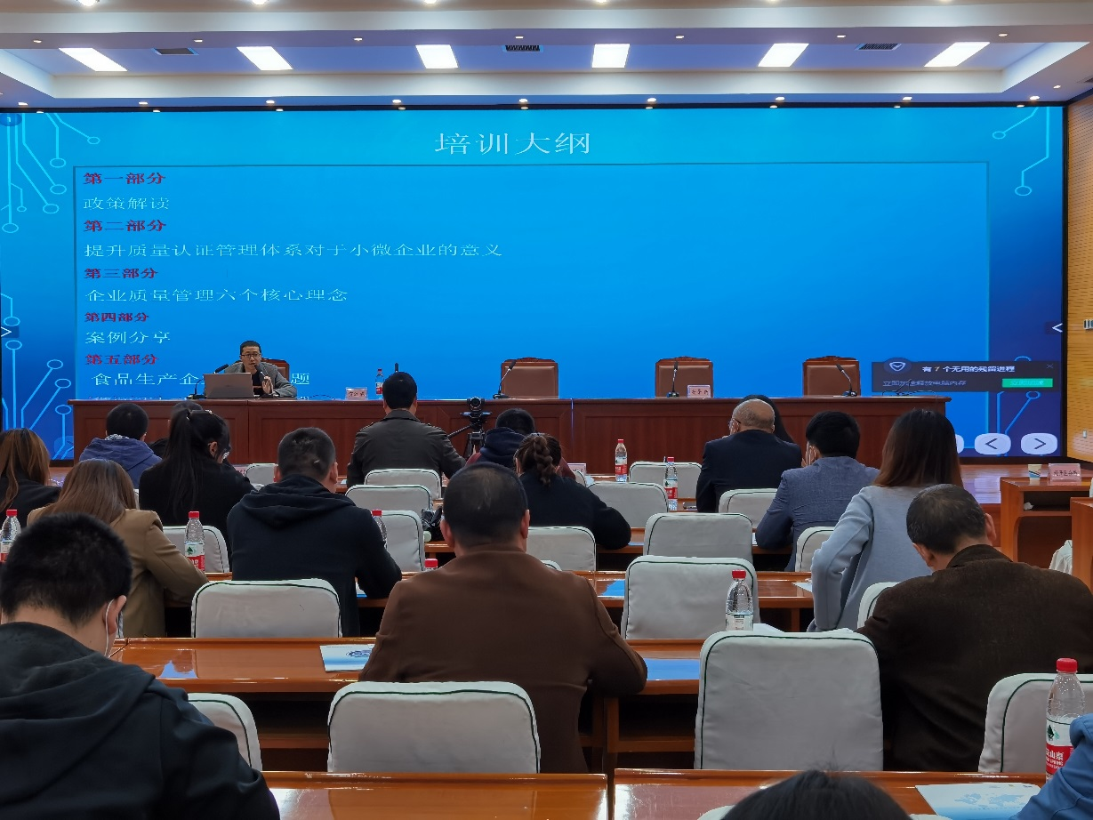方圆四川公司的贺江霖老师开展了专题培训,为相关企业和人员介绍:①小微企业质量提升活动的背景(政策解读);②质量提升对于小微企业的意义;③质量体系的六大“核心理念”介绍;④优秀案例的讲解;⑤食品生产企业常见问题。
